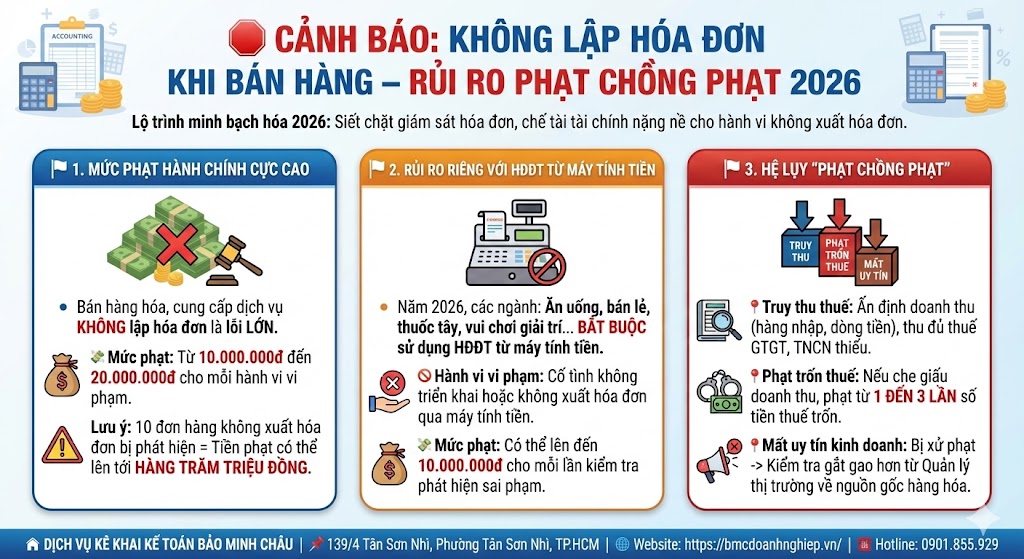 🛑 CẢNH BÁO: KHÔNG LẬP HÓA ĐƠN KHI BÁN HÀNG – RỦI RO PHẠT CHỒNG PHẠT 2026