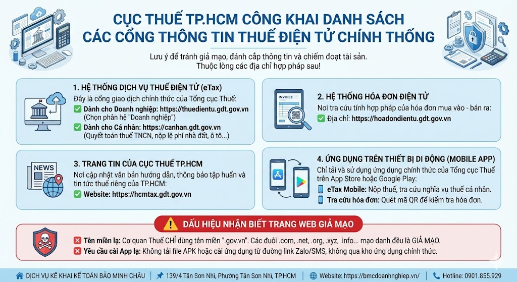 📢 CỤC THUẾ TP.HCM CÔNG KHAI DANH SÁCH CÁC CỔNG THÔNG TIN THUẾ ĐIỆN TỬ CHÍNH THỐNG