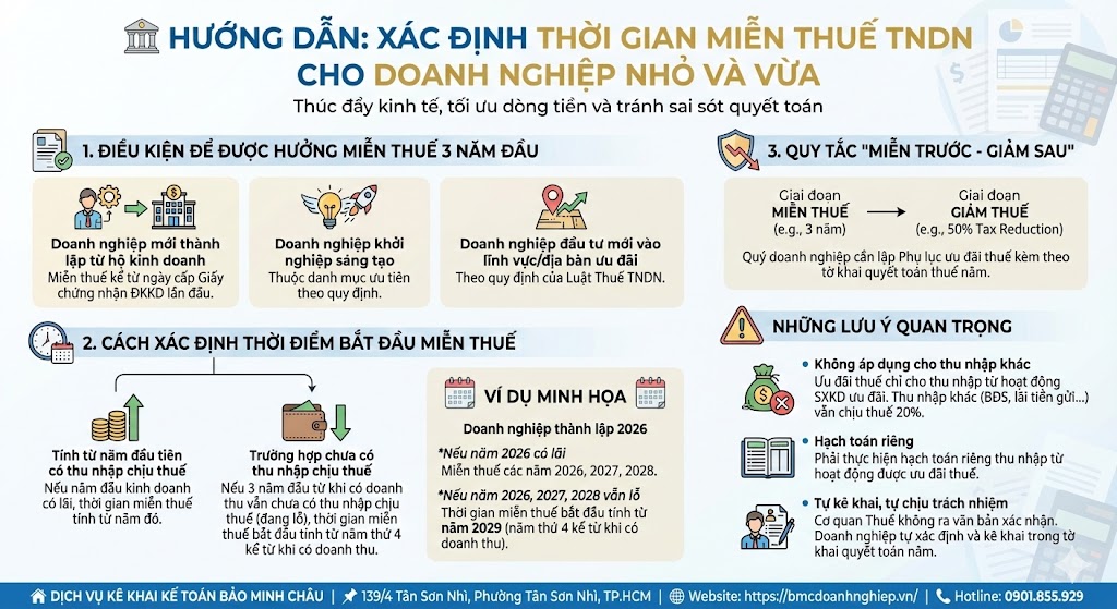 🏦 HƯỚNG DẪN: XÁC ĐỊNH THỜI GIAN MIỄN THUẾ TNDN CHO DOANH NGHIỆP NHỎ VÀ VỪA