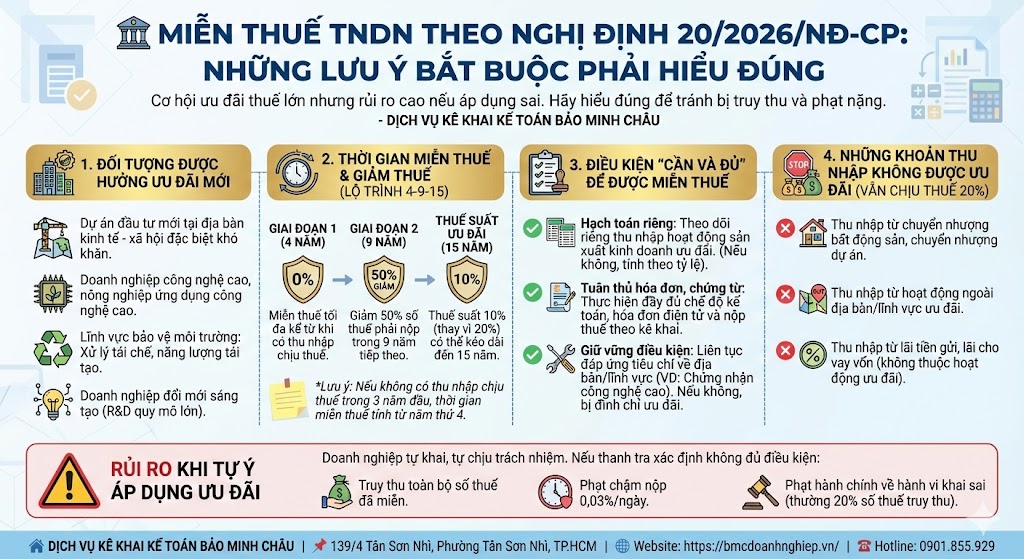 🏛️ MIỄN THUẾ TNDN THEO NGHỊ ĐỊNH 20/2026/NĐ-CP: NHỮNG LƯU Ý BẮT BUỘC PHẢI HIỂU ĐÚNG
