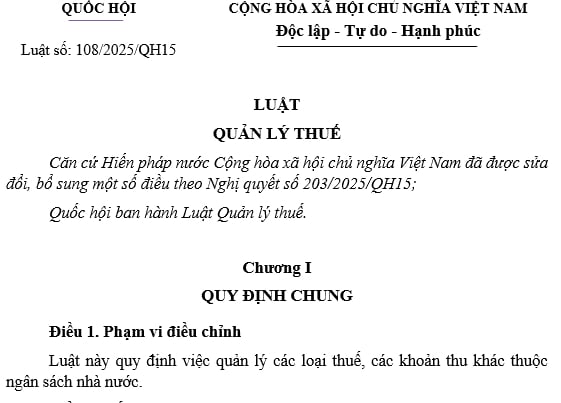 TOÀN VĂN Luật Quản lý thuế 2025 Luật số 108/2025/QH15 có hiệu lực từ 1/7/2026 chi tiết ra sao?
